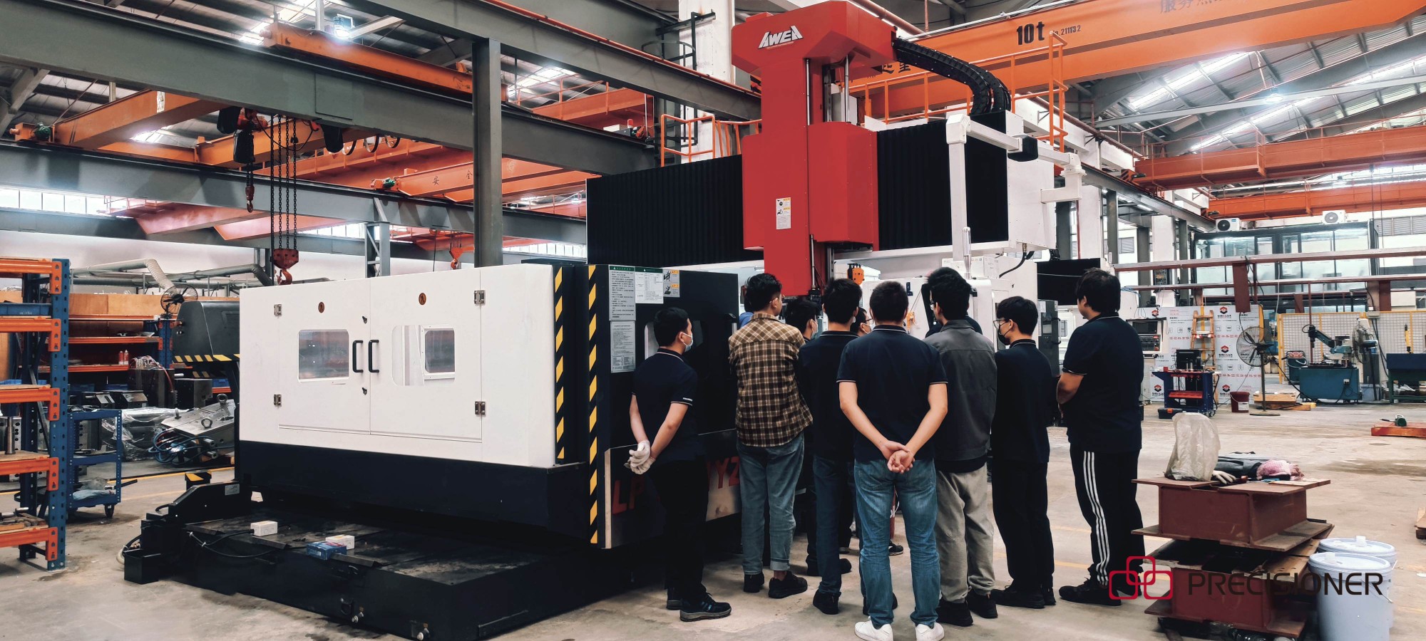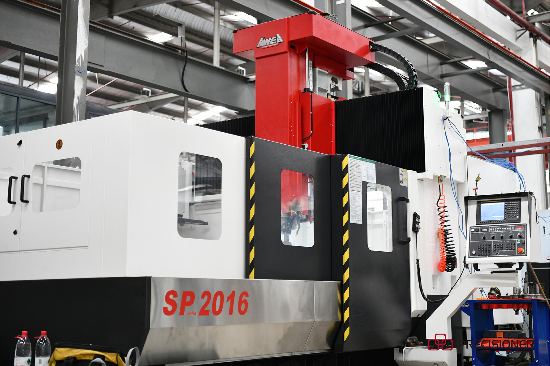 品成公司于2021年底共訂購了2臺“臺灣亞崴”龍門CNC,主軸轉速為12000轉/分,設備承重分別為8T和10T。4月初率先到廠的龍門CNC(型號SP-2016)的加工行程為2100*1600*760mm,現已投產使用;另一臺龍門CNC(型號LP-3021YZ)已于4月25日到廠安裝,其加工行程為3000*2800*1200mm(定制尺寸)。值得一提的是,定制的這臺龍門CNC擁有A/C 自動萬向頭功能,意味著其除了加工尺寸大外,可實現3+2軸靈活操作。