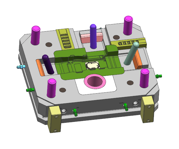 產品側面的倒扣特征采用斜頂結構,斜頂座滑動結構采用圓頭方式,保證了斜頂在運行中的穩定性。